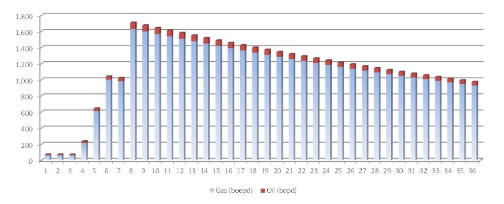 | Expected production post work programme: | 10,900 mcfpd + 70-90 bopd (gross IP) |