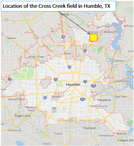 The Cross Creek Gas/Condensate field is located on the Humble Salt Dome about 15 miles from downtown Houston, Texas, and 5 miles from George Bush International airport.